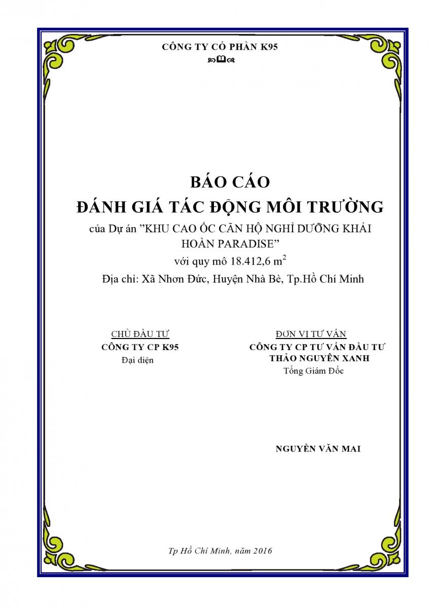 BÁo Cáo Đánh Giá Tác Động Môi Trường (Cấp Sở) Dự Án TẬP ĐOÀN KHẢI HOÀN